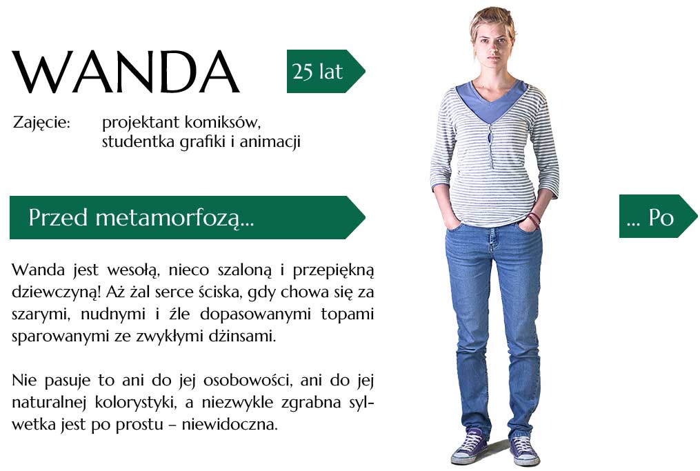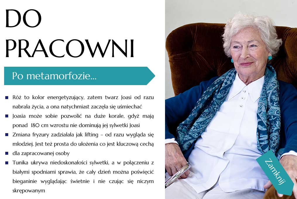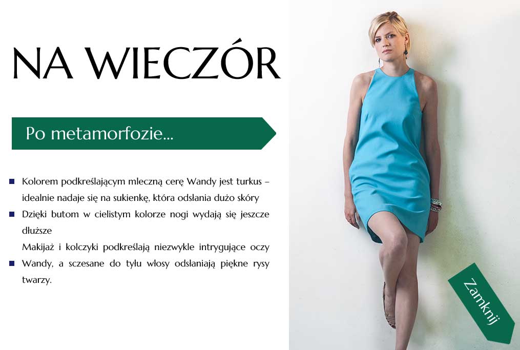 Pełna metamorfoza - kolory, styl, fasony, dodatki, tkaniny i ich faktura, wszystko to podkreśla Twoją naturalną urodę i wydobywa jej najpiękniejsze cechy, w pełni też odzwierciedla Twoją niezwykłą osobowość.